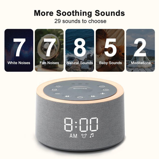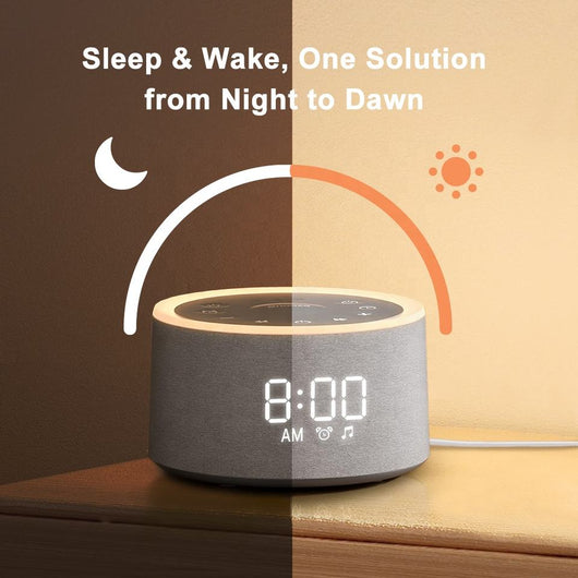 Få ro, fokus og bedre søvn med W27, en moderne White Noise Alarm, der kombinerer beroligende lyde med trådløs musikafspilning og et elegant LED-display. Perfekt til soveværelset, kontoret, børneværelset eller meditation.