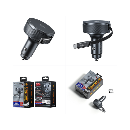 33W biloplader med udtrækkeligt USB-C-kabel (65 cm) – WEKOME™