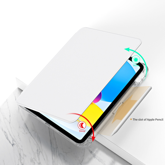 Dette cover er skræddersyet til en perfekt pasform omkring din iPad og sætter en ny standard for kvalitet og design. Med en aftagelig roterbar stander giver dette cover dig mulighed for at tilpasse din iPad i den perfekte synsvinkel, uanset om du ser film, arbejder eller deltager i videoopkald. Den 360° rotation sikrer, at du nemt kan skifte mellem stående og vandret tilstand, så du altid kan finde den optimale position.