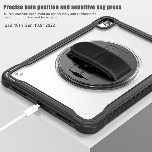 Optimer din brugeroplevelse med det 360° roterende håndtag, der også fungerer som en praktisk stander. Dette giver dig mulighed for at positionere din iPad i lige den vinkel, der passer bedst til dine behov – perfekt til både arbejde og underholdning. Og med den medfølgende skulderstrop kan du nemt og bekvemt bære din iPad med dig overalt, hvilket gør den ideel til at have med på farten.