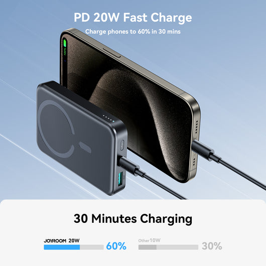 Med en maksimal effekt på 20W sikrer JOYROOM™ MagSafe Powerbank hurtig og effektiv opladning af din enhed, så du kan komme videre med dine aktiviteter uden lange ventetider. Udstyret med et Li-Polymer batteri på 10.000 mAh leverer denne powerbank tilstrækkelig strøm til flere opladninger af din iPhone, hvilket gør den perfekt til både daglig brug og rejser.