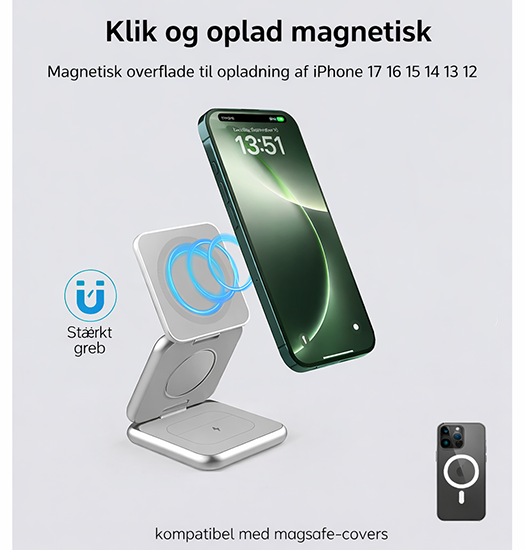 Premium 3-i-1 Magnetisk Trådløs Oplader - Foldbar & MagSafe-kompatibel