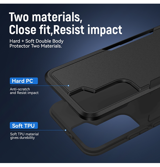 Dette hårdføre håndværkercover giver dig fuld beskyttelse mod slid, skrammer og tab - coveret er designet med en hård ydre skal, der kan stå imod ridser, skrammer og skidt, samt et blødt indre der er stødarbsoberende, så din Samsung Galaxy S23+ ikke tager skade.