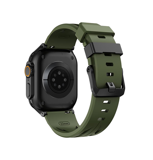 TrailHunter Silikone - Armygrøn er den perfekte Apple Watch-rem til dig, der ønsker et råt outdoor-look kombineret med høj komfort. Remmen er lavet i blød og fleksibel silikone, som føles behagelig på håndleddet, hele dagen. Det armygrønne design giver et stærkt og naturligt udtryk, inspireret af natur og eventyr, og passer perfekt til både hverdag og aktiv brug.